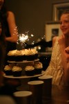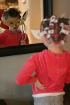 Surprisingly, it took 10 years of party themes before I got the idea to combine Bella’s January 2nd birthday with New Year’s Eve. The results were lovely, I must say. We started with an adorable shirt from Crewcuts – with a picture of a girl in a ball gown – as our inspiration. Bella wanted to incorporate masks and have an elegant Cinderella-type theme. She also wanted a disco ball and dancing – hey, she’s her mommy’s girl! We had lots of fancy appetizers, of course mac ‘n cheese, and for dessert: red velvet cupcakes with sparkler candles.