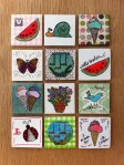 I’m definitely more “crafty” than “artsy,” but every once in a while I get the urge to make my own masterpiece and, when that feeling comes, I love to make a few inchies. If you don’t know, inchies are tiny works of art using any and all art medium, with the constraint being that the piece fit a one inch by one inch space. Crafters like me have gotten into the mix by incorporating stamping, collage and other paper-crafting elements into inchie art. Ellen Hutson is one of the most inspiring inchie artists to me and uses the cutest inchie stamps designed by Lockhart Stamp Company. Another great resource is Inchie Arts, their website has tons of ideas and supplies. Coloring in my own little inchies with the amazing Copic markers I’ve begun collecting feels to me as good as breaking into a new pack of Crayolas during the first weeks of school when I was a little girl – ahh! And the thing about inchies: they are honestly too tiny to mess up. I love that even I can be an artist on a one-inch canvas.